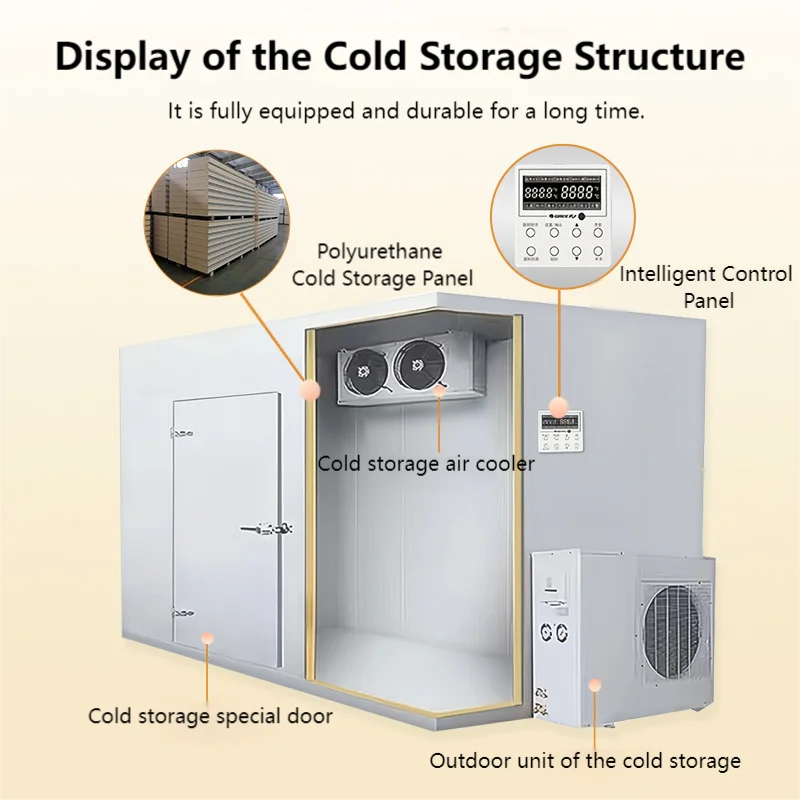Small cold storage, used for small needs, is popular in food and other fields for storing low-temperature items like fruits,vegetables, meat and seafood. By keeping a constant low temperature, it delays spoilage and prevents bacteria, extending shelf life.